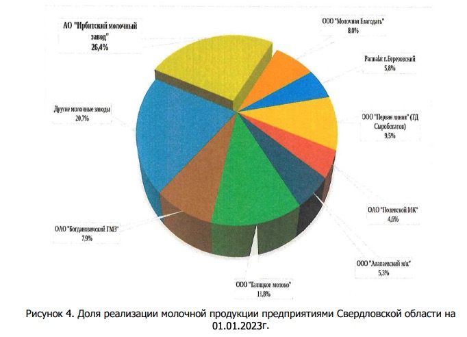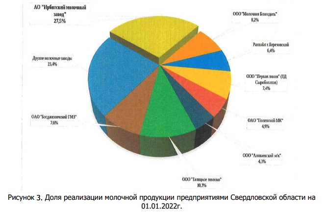 Добавим, речь идёт о реализации молочной продукции. Рынок питьевого пастеризованного молока выглядит несколько иначе: лидерами также являются Ирбитское и Талицкое предприятия, тогда как третье место за Богдановичем (компания «Молочный кит»).
