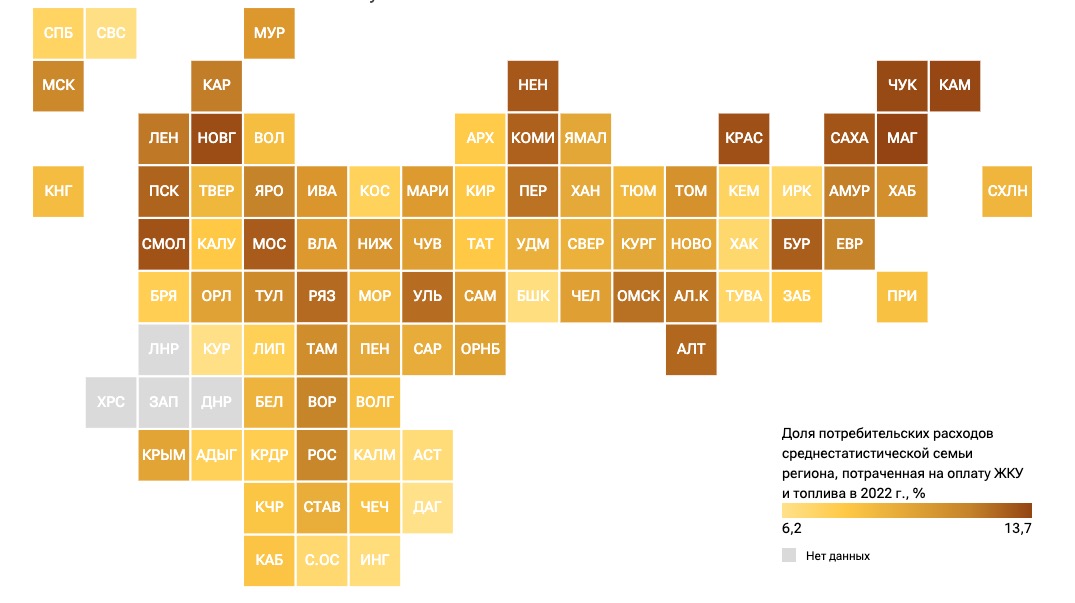 Для сравнения: в Москве ЖКУ обходится в 9925 руб., что составляет 10,8% расходов семьи. С этим показателем столица занимает 60 место. Весь рейтинг можно посмотреть здесь: https://ria.ru/20230904/zhile-1892990795.html