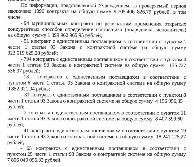 Согласно обнародованным данным, за три года учреждением заключено 1096 контрактов на общую сумму 9,7 млрд рублей и лишь в 94 случаях на 1,4 млрд подрядчик был выбран по результатам применения открытых конкурентных способов.