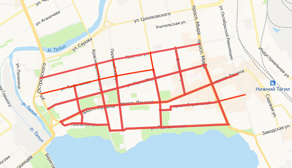 - проспект Ленина на участке от улицы Мира до улицы Октябрьской революции.