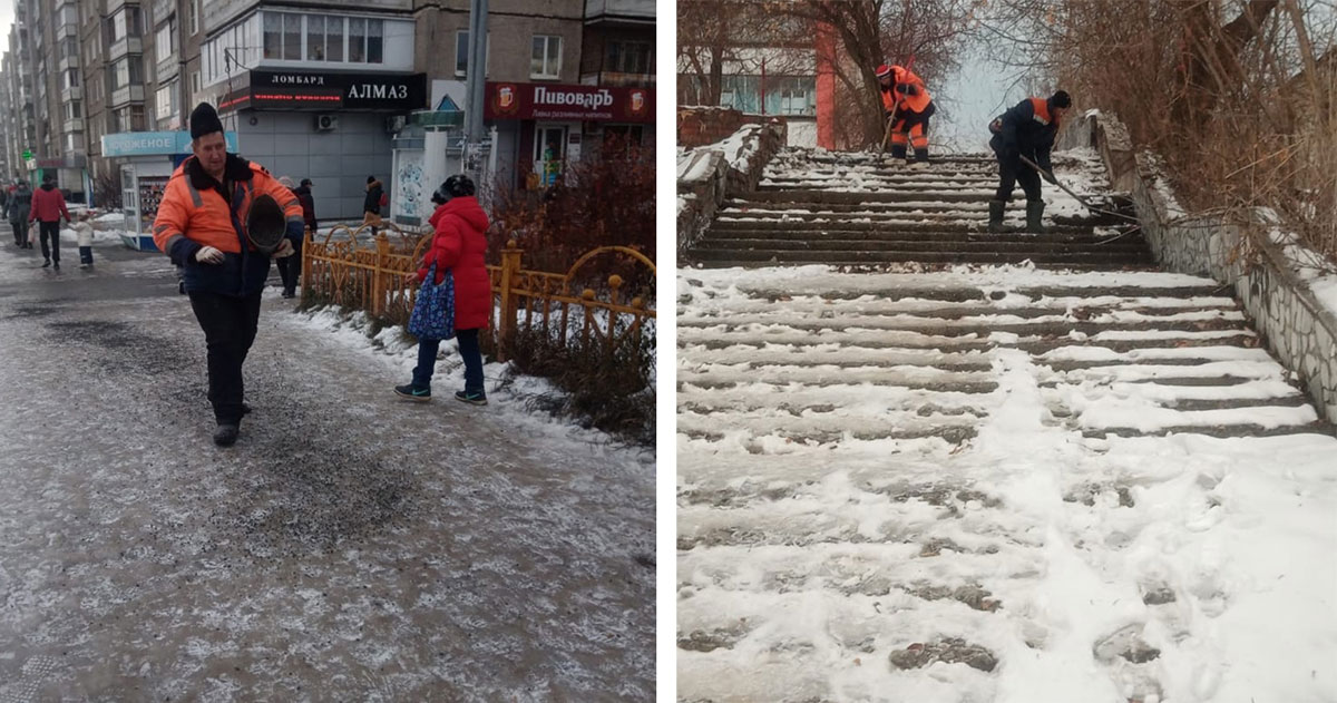 По сообщению генподрядчика обслуживания дорожно-уличной сети МУП «Тагилдорстрой», дорожные рабочие ежедневно обрабатывают тротуары противогололедной смесью, а также вручную очищают ото льда и снега пешеходные зоны.