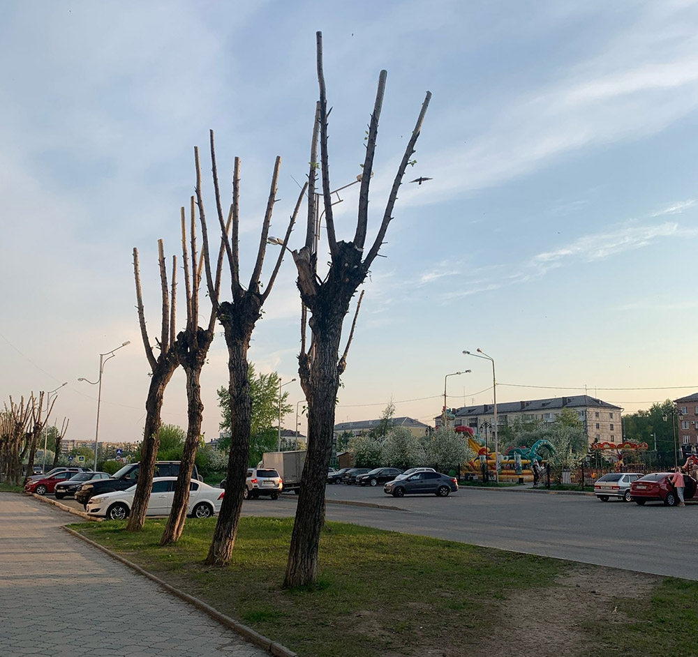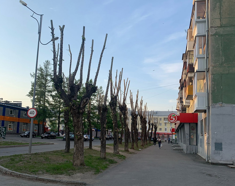 После скандала с умирающими после обрезки липами на проспекте Ленина, жители Нижнего Тагила стали жаловаться, что подобное происходит и на других улицах города. Вот так выглядит центр Вагонки.