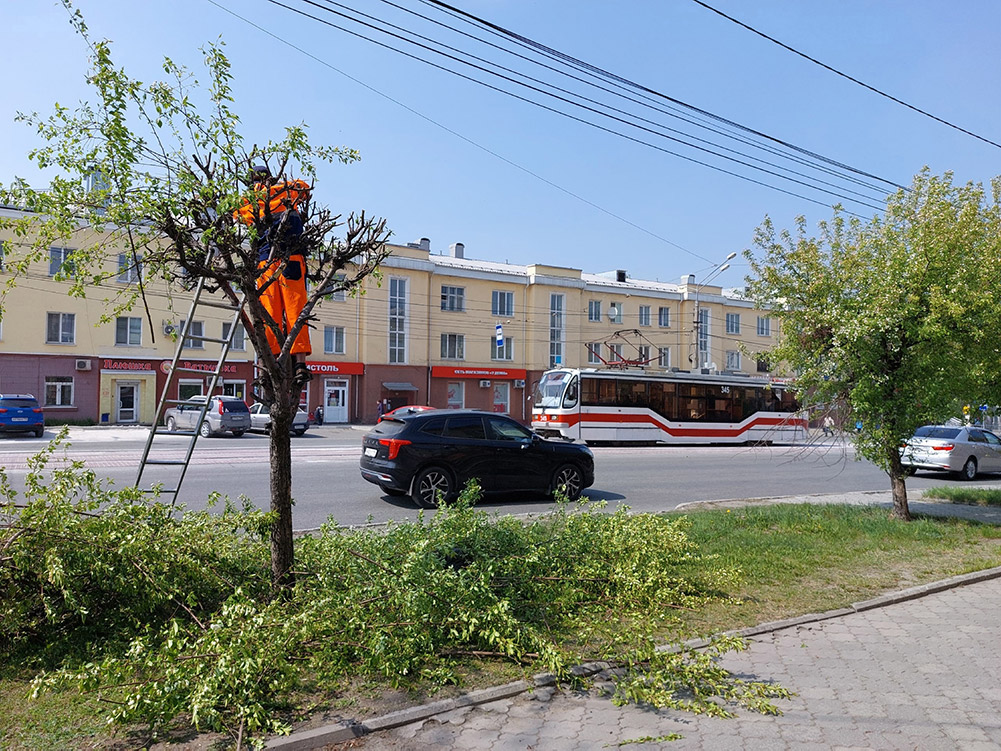 И напоследок самый центр города — проспект Ленина, где, по словам начальника отдела по экологии и природопользованию администрации Ларисы Носовской, липам провели формовочную обрезку.