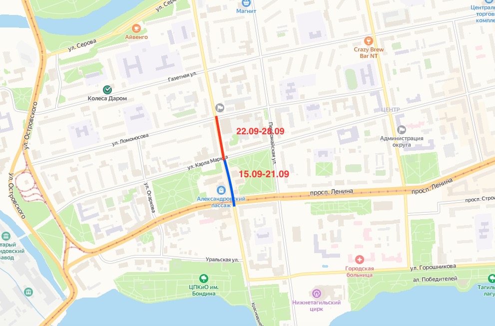 Также перекрыта ул. Красноармейская в районе ТЦ «Александровский пассаж» — там коммунальщики меняют трубы.