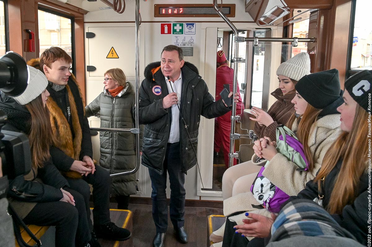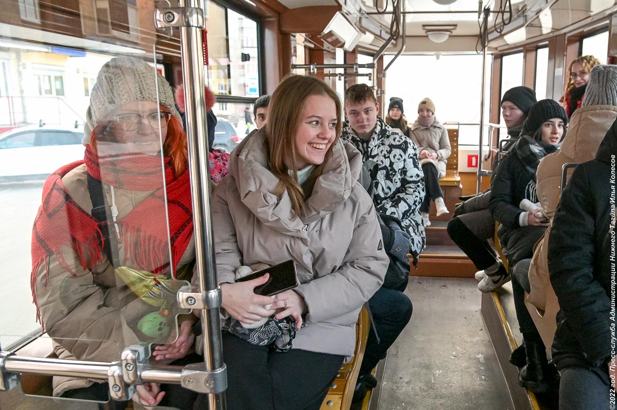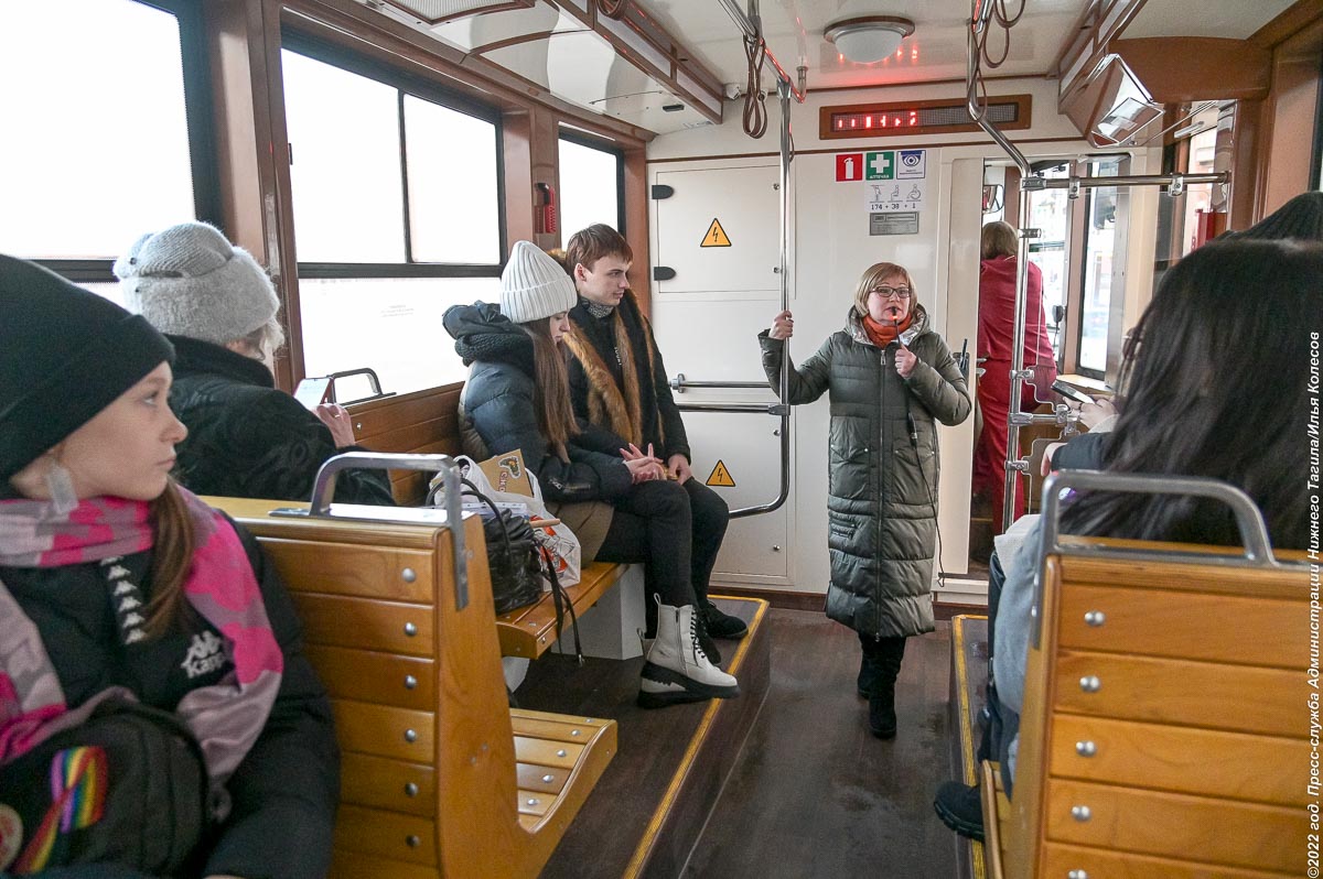 Ребята прокатились по кольцу от остановки «Рудоуправление» по старейшим и новым районам города в трамвае под номером «1722», присвоенным в честь даты основания Нижнего Тагила. Второй вагон получил также знаковый для истории номер «2022».