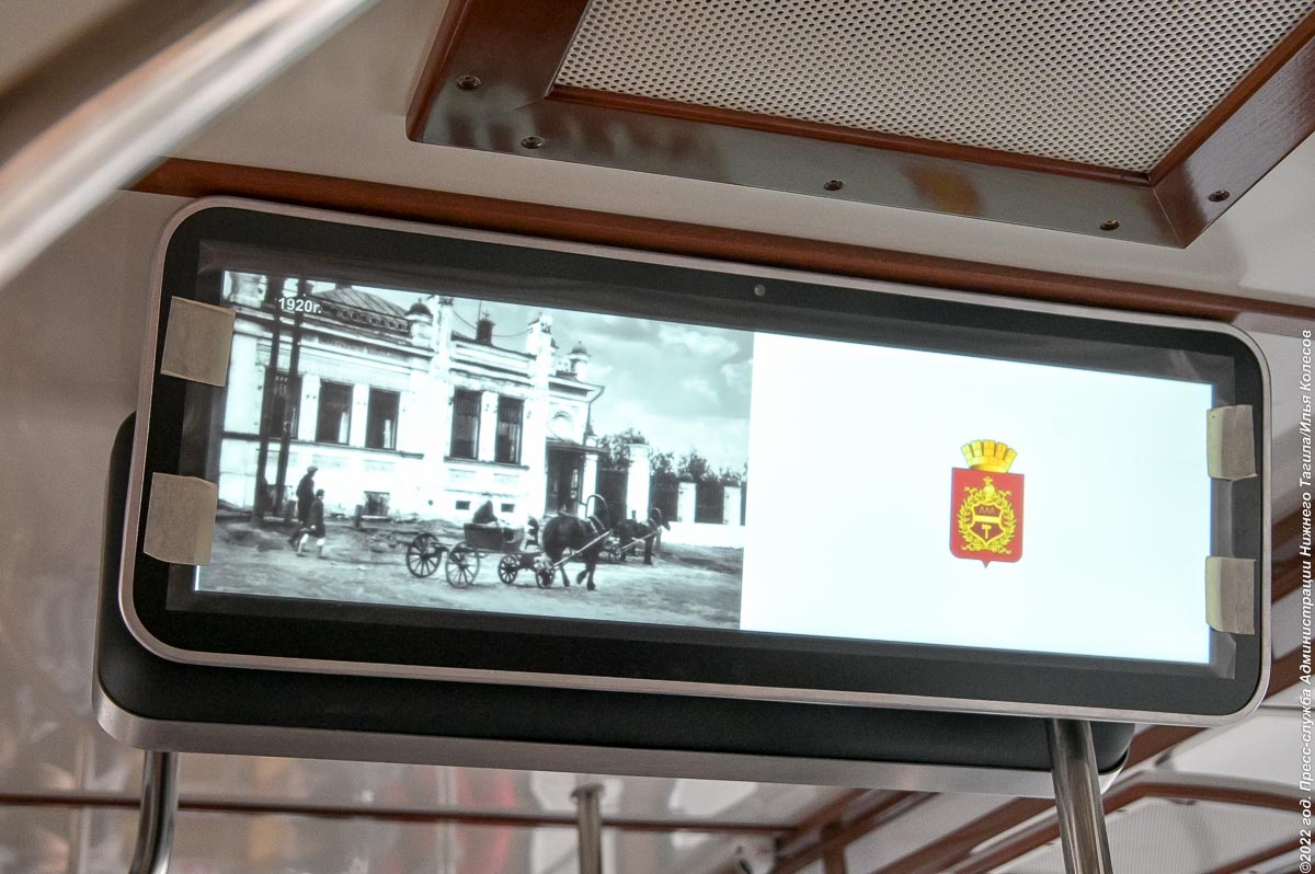 Новые трамваи рассчитаны на 38 сидячих мест. В салоне большие окна, кондиционер, мониторы, USB-зарядка, есть wi-fi. Атмосферности поездке добавляют деревянные сидения, кожаные ремни поручней и специально пошитая униформа вагоновожатых.