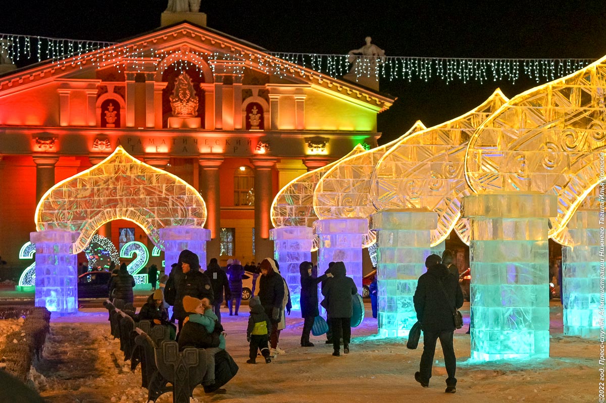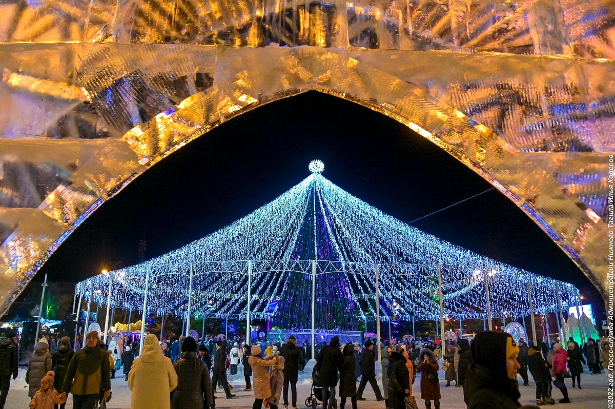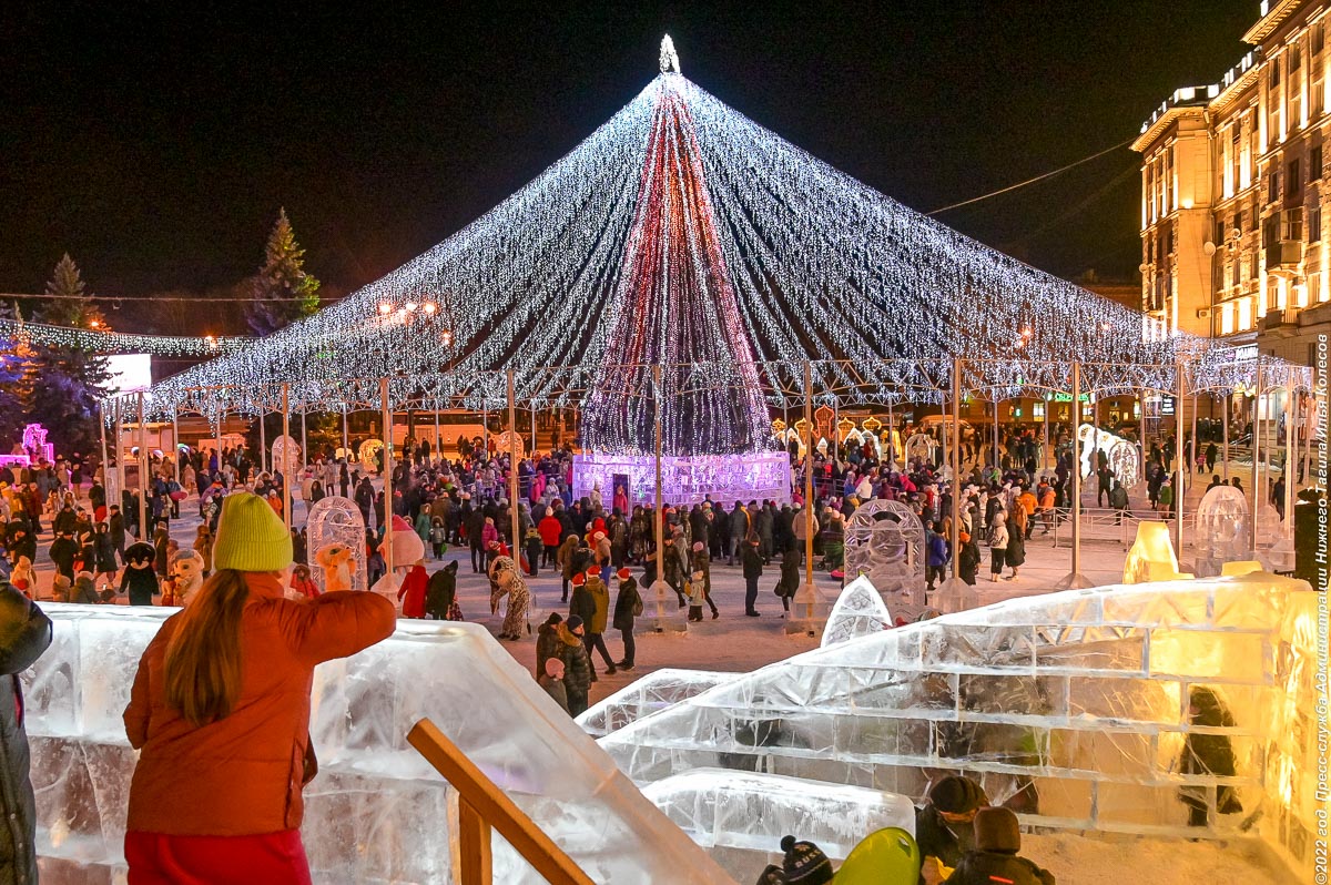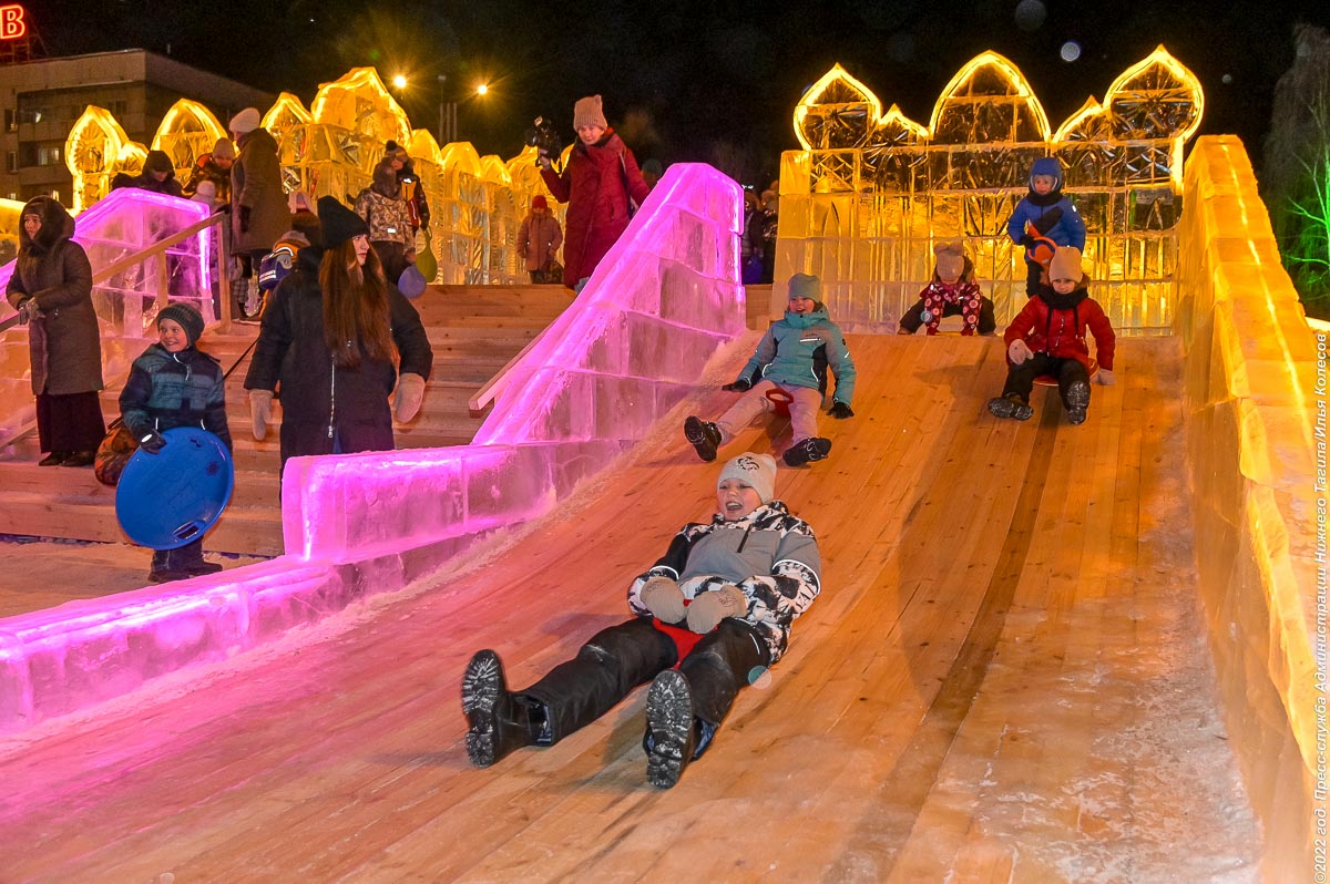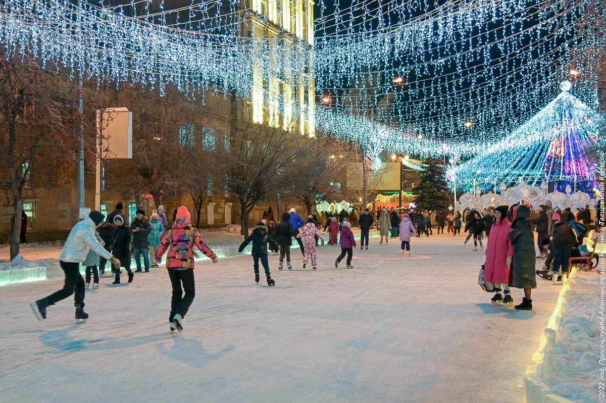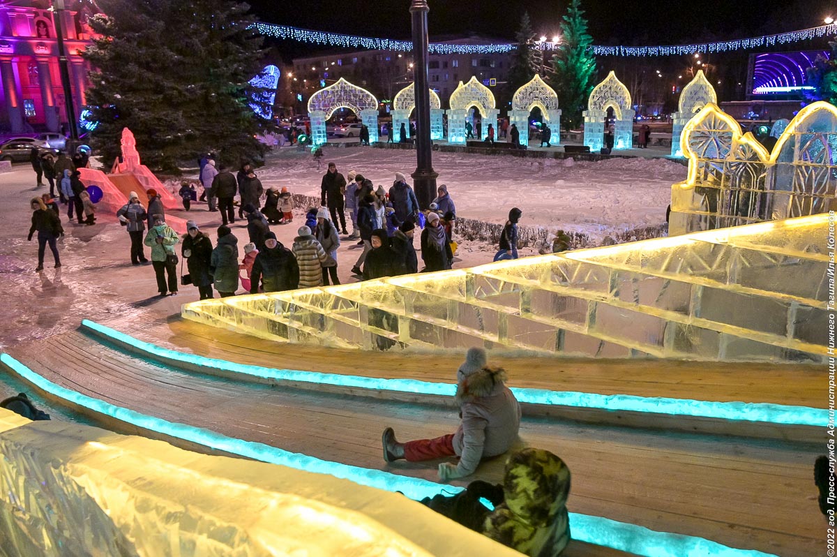 В среду вечером на Театральной площади состоялось торжественное открытие ледового городка и главной ёлки. В этом году новогоднее оформление центральной площадки посвятили героям российских и советских мультфильмов. В городке установили скульптуры сказочных персонажей, комплексы горок с несколькими скатами, а также лабиринты, световые фигуры, фотозоны «Три богатыря» и «Лисья гора», сообщает пресс-служба мэрии. На весь объект потратили чуть более 11 млн рублей. Главной изюминкой городка стал 120-метровый каток, который залили на проспекте Строителей. Вход на него свободный.