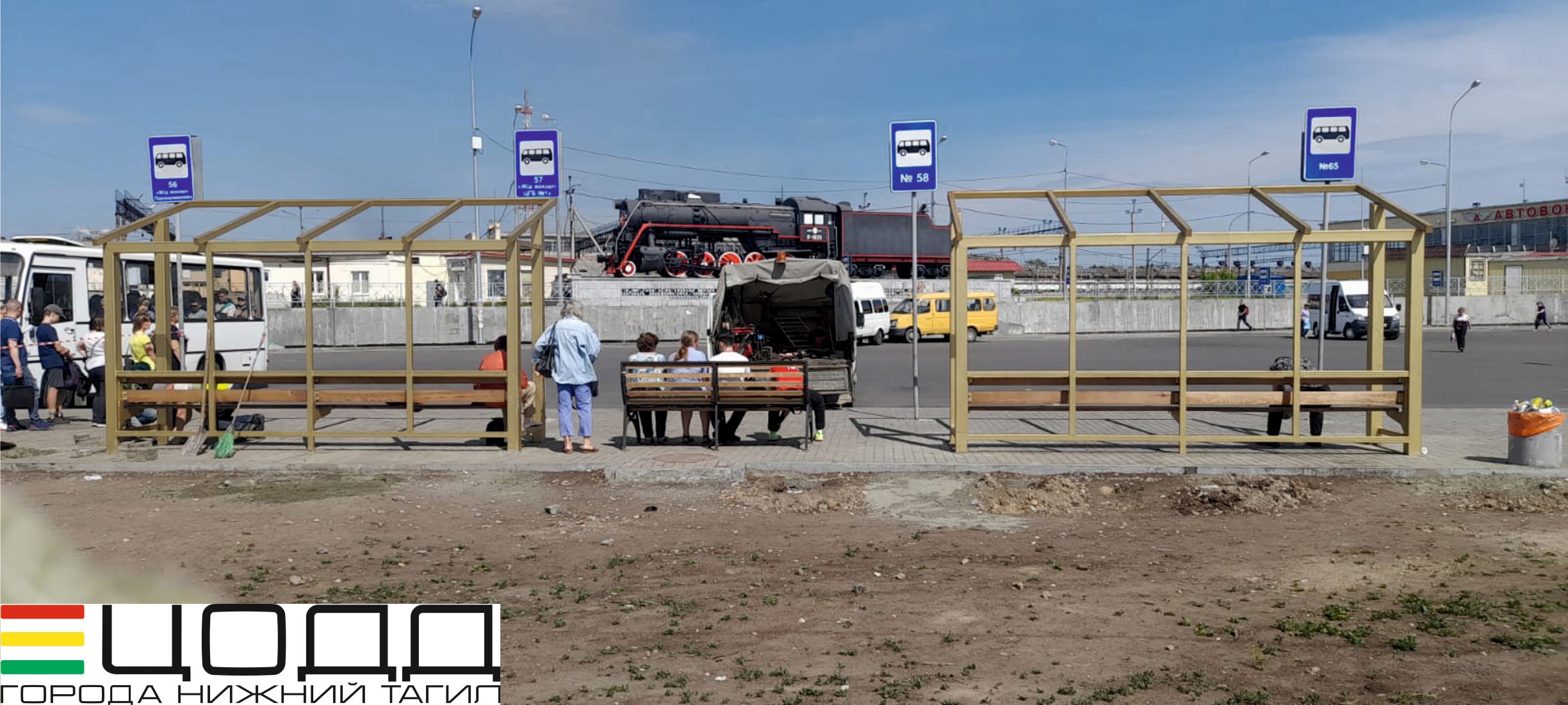 Металлургический комбинат установил комплексы, которые вмещают большое количество пассажиров. Они защищают людей от солнца и ветра с трех сторон, а отдохнуть можно на больших лавках.