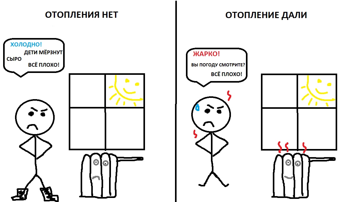 Администрация Нижнего Тагила ироничной иллюстрацией ответила на претензии некоторых горожан на раннее начало отопительного сезона. Соответствующий «комикс» опубликовали на официальных страницах мэрии и её структур во Вконтакте под объявлением о старте подачи тепла.