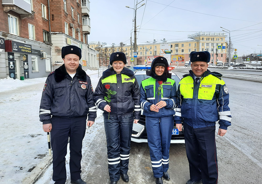 В Нижнем Тагиле руководители местного отдела ГИБДД во главе с начальником Александром Зверевым вышли на городские дороги. Причина веская — поздравить автолюбительниц с наступающим женским днём 8 марта.