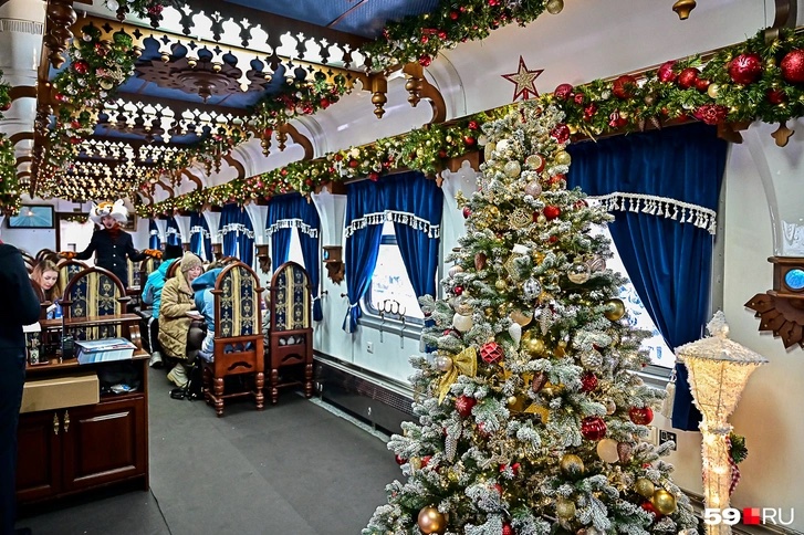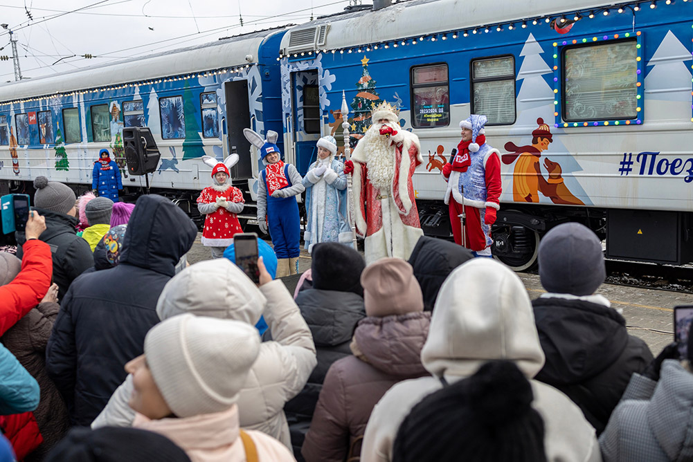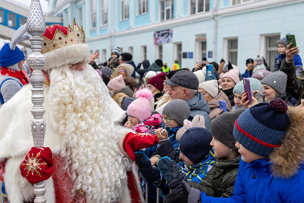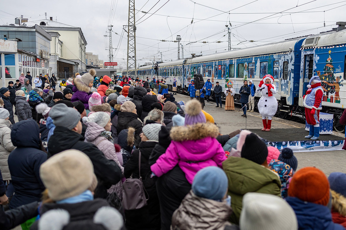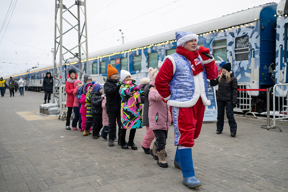 Напомним, на железнодорожный вокзал Нижнего Тагила поезд Деда Мороза прибудет в пятницу в 9:00 и простоит до 15:30. Дед Мороз выйдет на платформу два раза: по прибытии и при отъезде. Для свободного посещения в порядке очереди будут открыты вагоны №11 (лавка и фотокупе), 12, 13 (буфет и ресторан северной кухни). В лавке можно купить подарки, сувенирную продукцию, а также отправить открытку Деду Морозу или друзьям и близким по всей стране. Также возле состава организуют развлекательную программу.