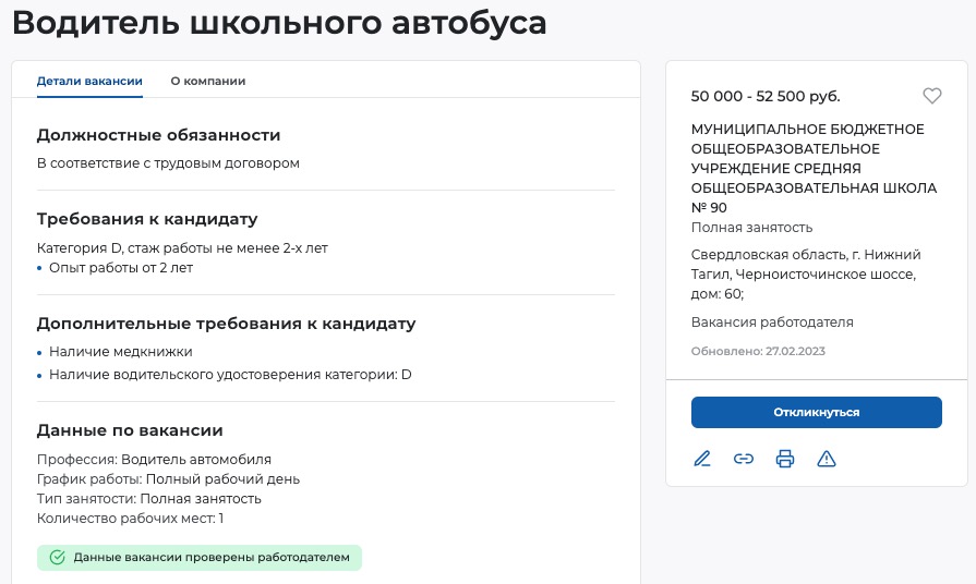 В мэрии журналистам также сообщили, что водителя школьного автобуса все-таки нашли и вакансия официально закрыта. Сейчас кандидат проходит медицинскую комиссию и другие формальные процедуры для трудоустройства. Однако на портале Минтруда вакансия до сих пор открыта. Более того, 27 февраля её вновь обновили, в очередной раз повысив обещанную зарплату до 50-52 тыс. рублей.