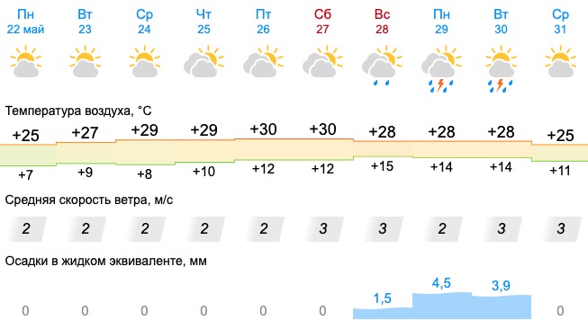 В ближайшую неделю по прогнозам синоптиков существенных дождей не ожидается, а температура воздуха продолжит повышаться вплоть до +30.