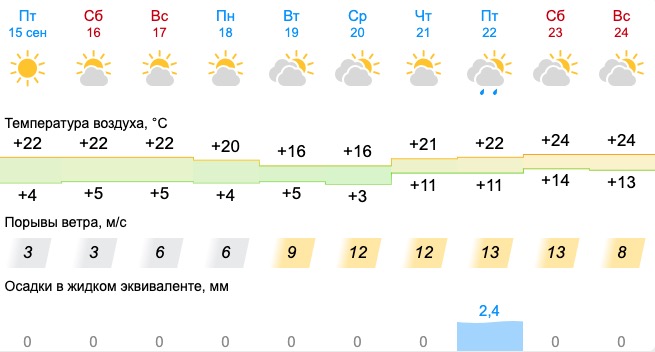 «19 сентября через Урал пройдет атмосферный фронт, который вызовет кратковременные дожди и понизит температуру воздуха на 4-5 градуса: днем ожидается +13...+18, ночью +3...+8. Вторая половина недели предполагается без значительных осадков, температура днем вновь подтянется к +19...+22», — рассказала Галина Шепоренко.