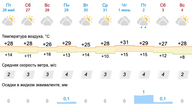 «В последние два дня мая длительное всевластье антициклона все же пошатнется. Атмосферный фронт проследует через территорию Свердловской области с кратковременным дождем, осадки более вероятны в северных и горных районах области. Жара ослабеет на 4-6 градусов: температура воздуха 30-31 мая ожидается ночью +10...+15, днем +22...+27», — рассказала Галина Шепоренко.