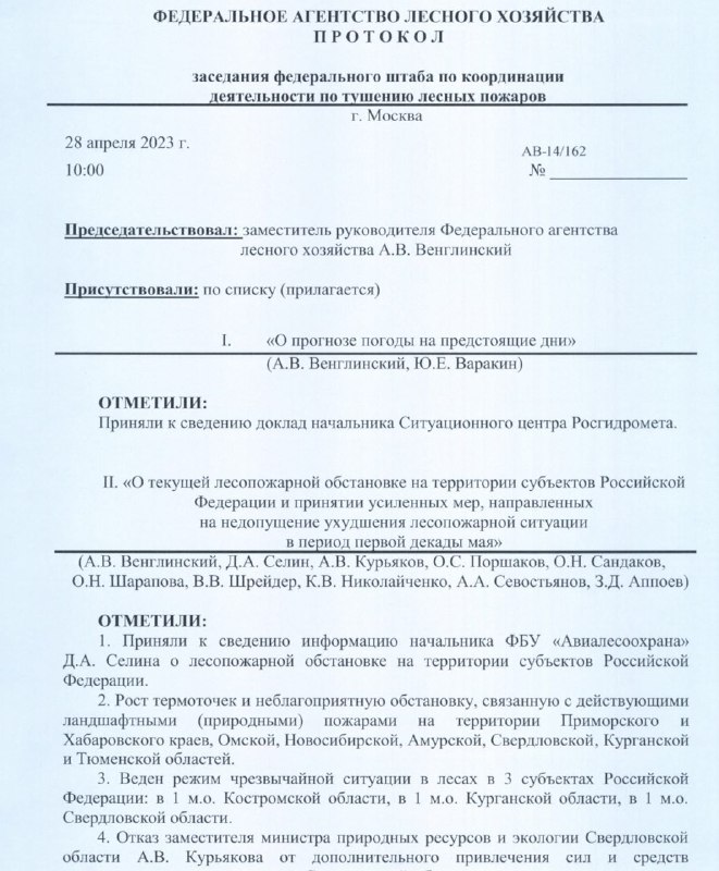 Еще в апреле, когда Свердловскую область не захлестнули крупнейшие за всю историю природные пожары, начальник ФБУ «Авиалесоохрана» предупреждал о росте термоточек и неблагополучную остановку на территории региона. Однако заместитель министра природных ресурсов и экологии Свердловской области Андрей Курьяков отказался от привлечения дополнительных сил и средств. Соответствующий протокол заседания федерального штаба Рослесхоза опубликовал telegram-канал «Зеленый змий», пишущий на экологическую тему и близкий к Росприроднадзору.