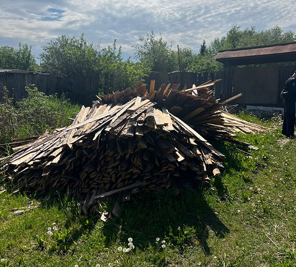 Судя по опубликованным фото, жители нарушили правила складирования пиломатериалов возле дома, а также пожароопасного мусора.