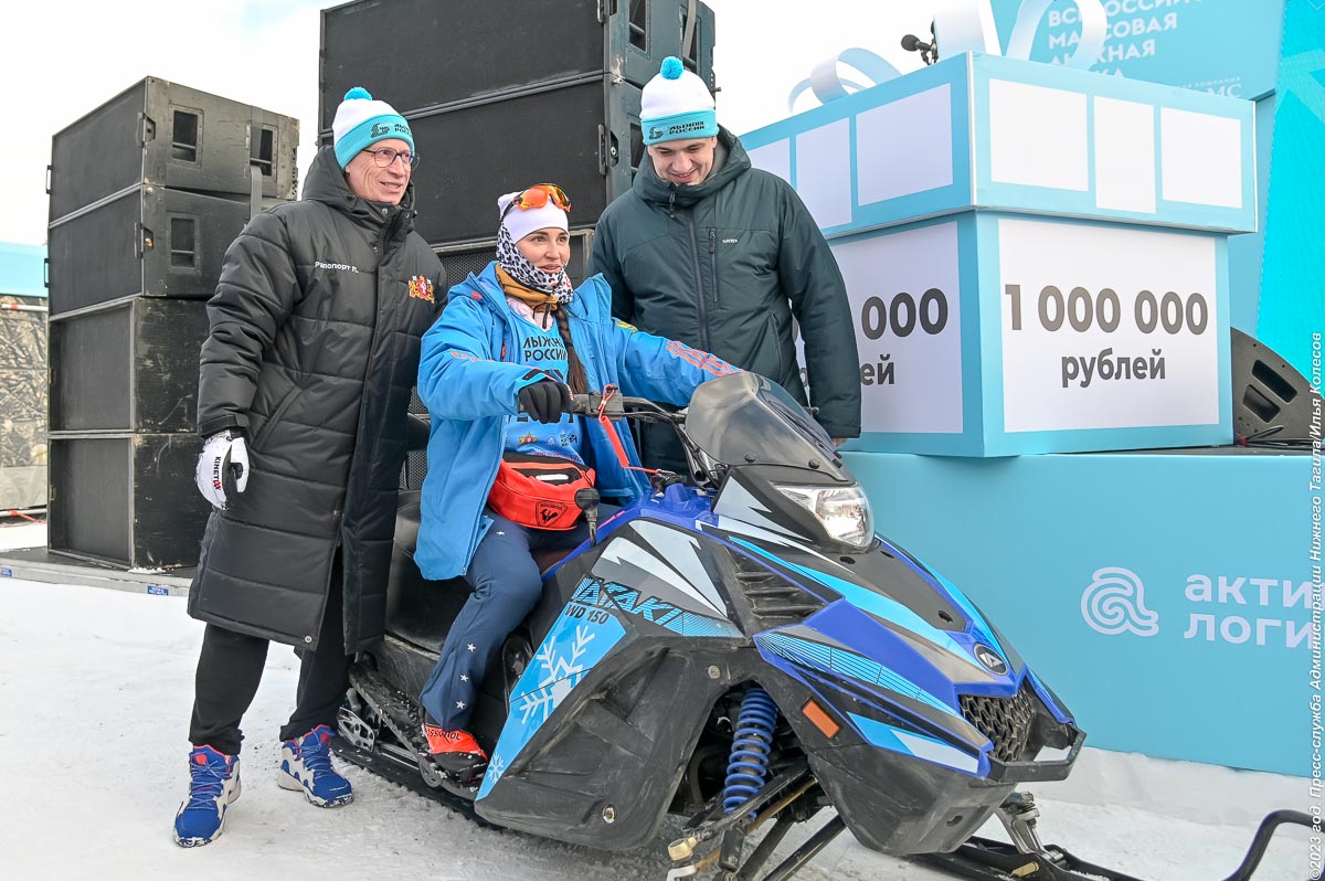В подарок победителям вручили снегоходы. Ещё миллион рублей в качестве сертификатов распределили между участниками спортивного забега, которые заняли 2-10 места.