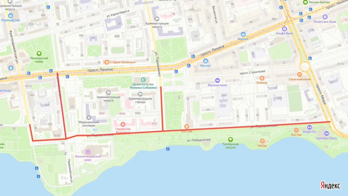 - ул. Первомайская от ул. Горошникова до пр. Ленина;