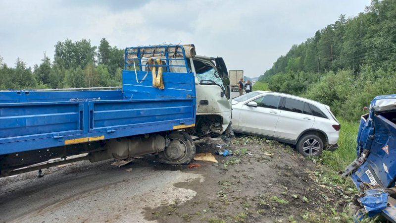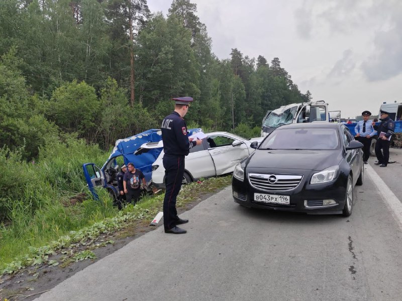 Страшная авария произошла на 19 км Серовского тракта на подъезде к Екатеринбургу. По предварительным данным ГИБДД, водитель грузового фургона ISUZU отвлекся на документы, выехал на правую обочину, где врезался в стоящие автомобили Citroën, Mercedes и Opel, а также сбил троих пешеходов.