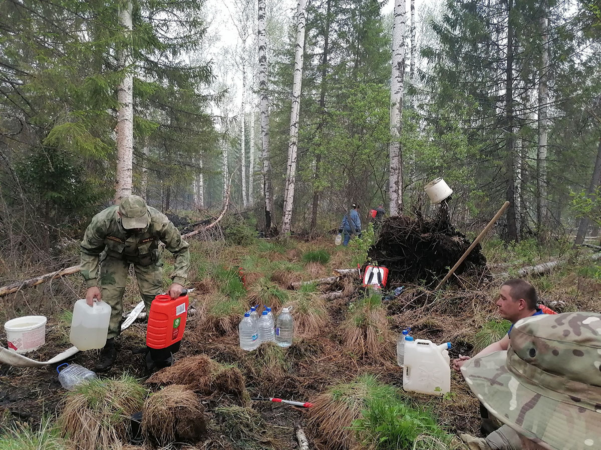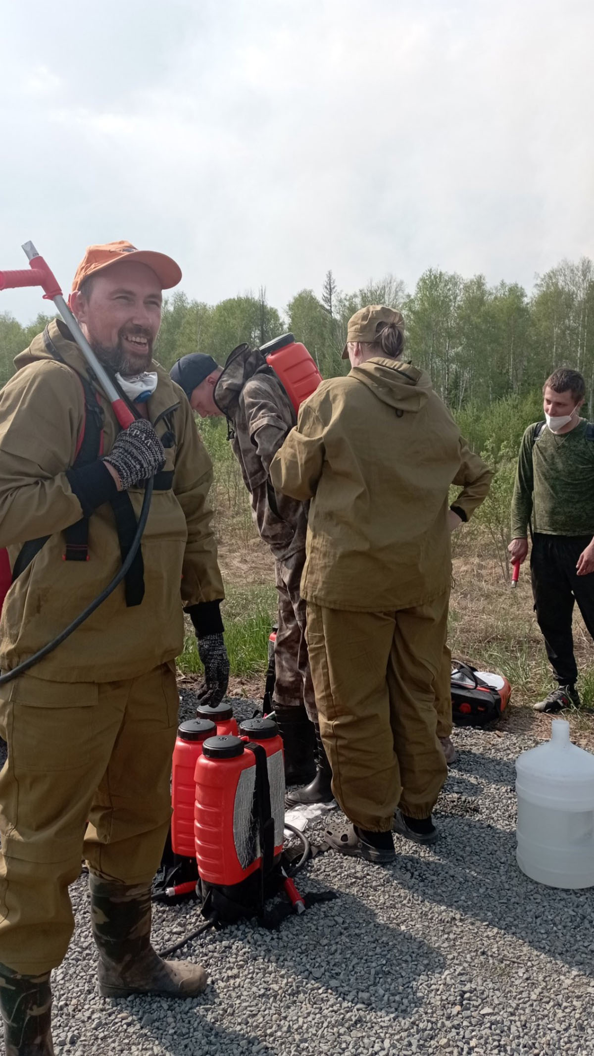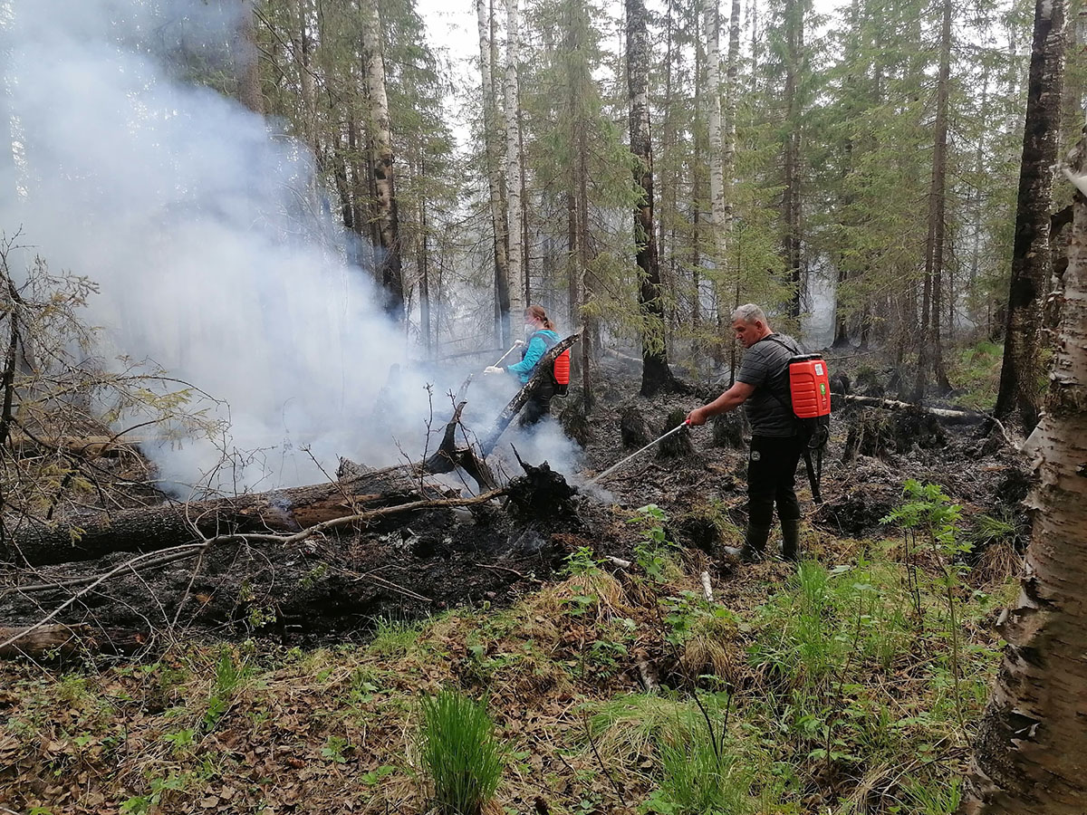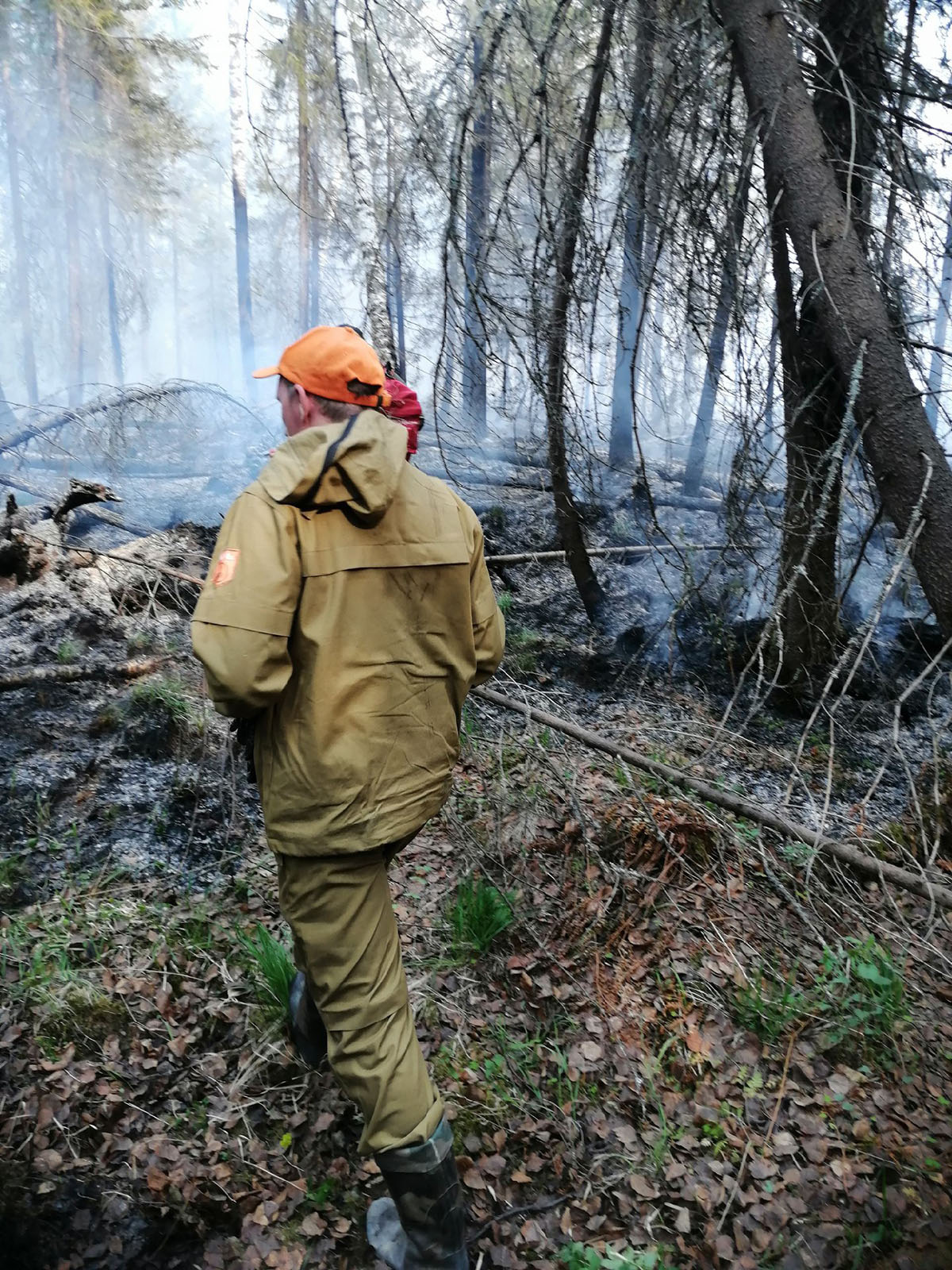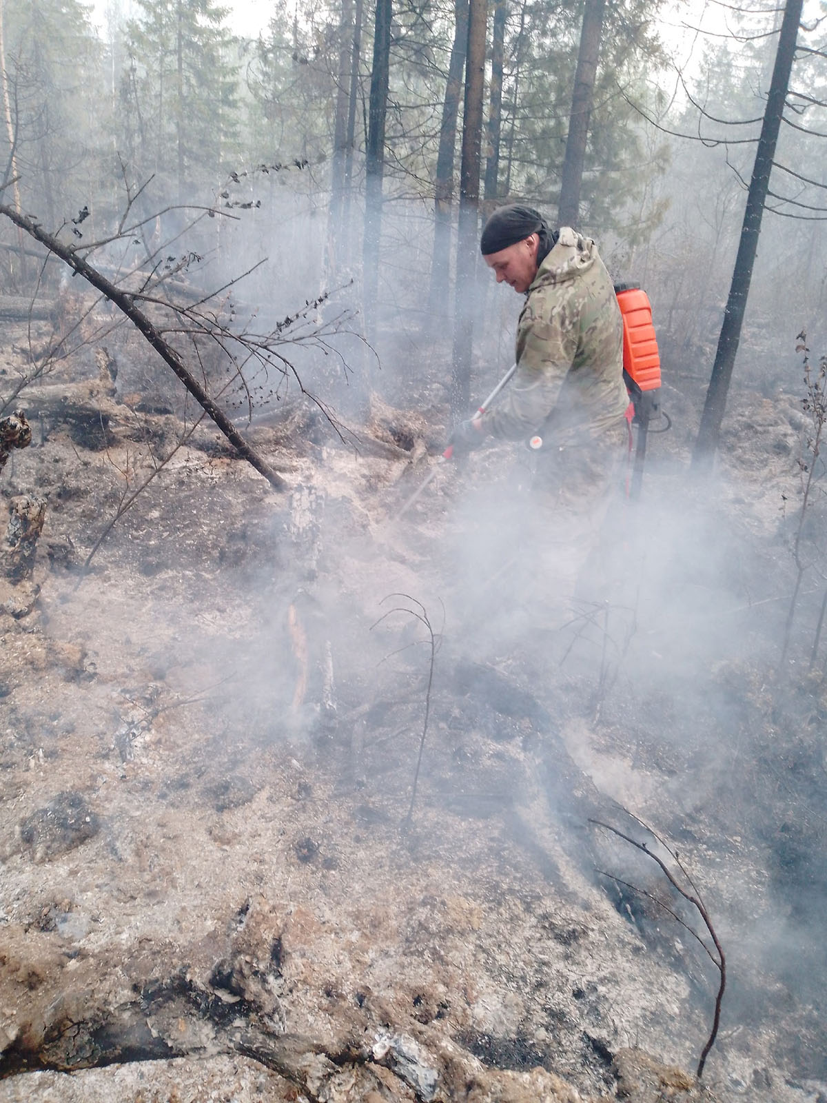 Эти фотографии опубликовали сами добровольцы, которые принимали участие в тушении пожара в лесной местности.