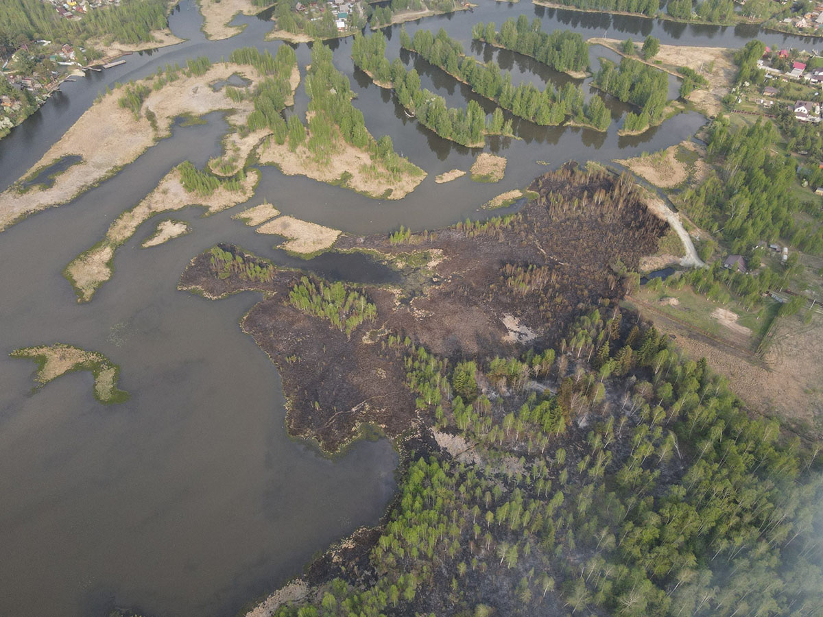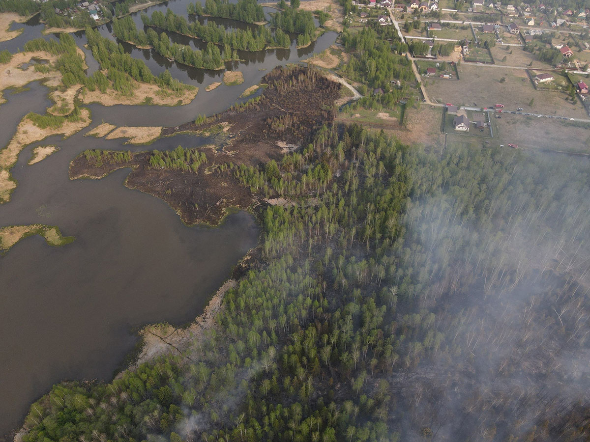 На снимках с воздуха заметно, насколько близко огонь подступил к жилым домам.