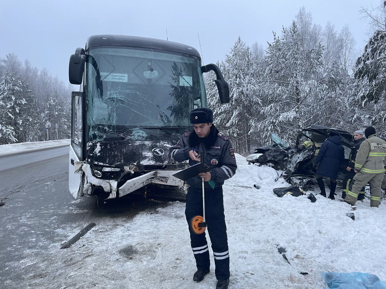 Помимо водителя, в аварии погибли пассажиры легковушки: 44-летний житель Нижней Туры, 34-летний житель Лесного и 12-летний ребенок из Нижней Туры. Все участники аварии были пристегнуты ремнем безопасности. Водитель и 26 пассажиров автобуса сообщением «Североуральск-Екатеринбург» не пострадали.