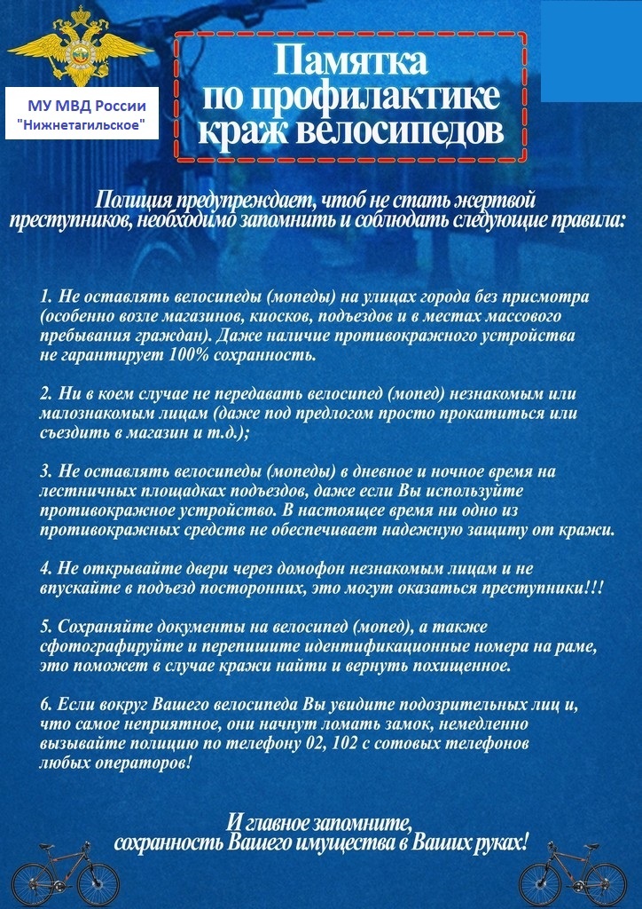 Сотрудники полиции советуют не оставлять транспорт без присмотра и пользоваться специальными тросами. Они хоть и не являются гарантированным средством защиты, но на их снятие злоумышленнику потребуется время.