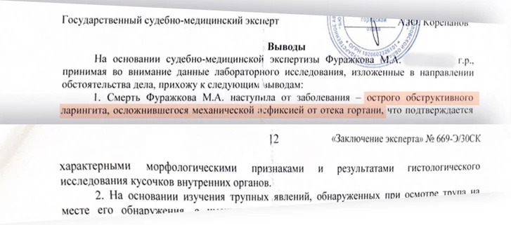 Сначала следователи подозревали мать в смерти ребёнка, но вскрытие показало, что малыш умер из-за острого обструктивного ларингита (осложнение ОРВИ), осложнившегося асфиксией от отека гортани, сообщает e1.ru. Дыхательные пути мальчика сомкнулись, и он задохнулся.