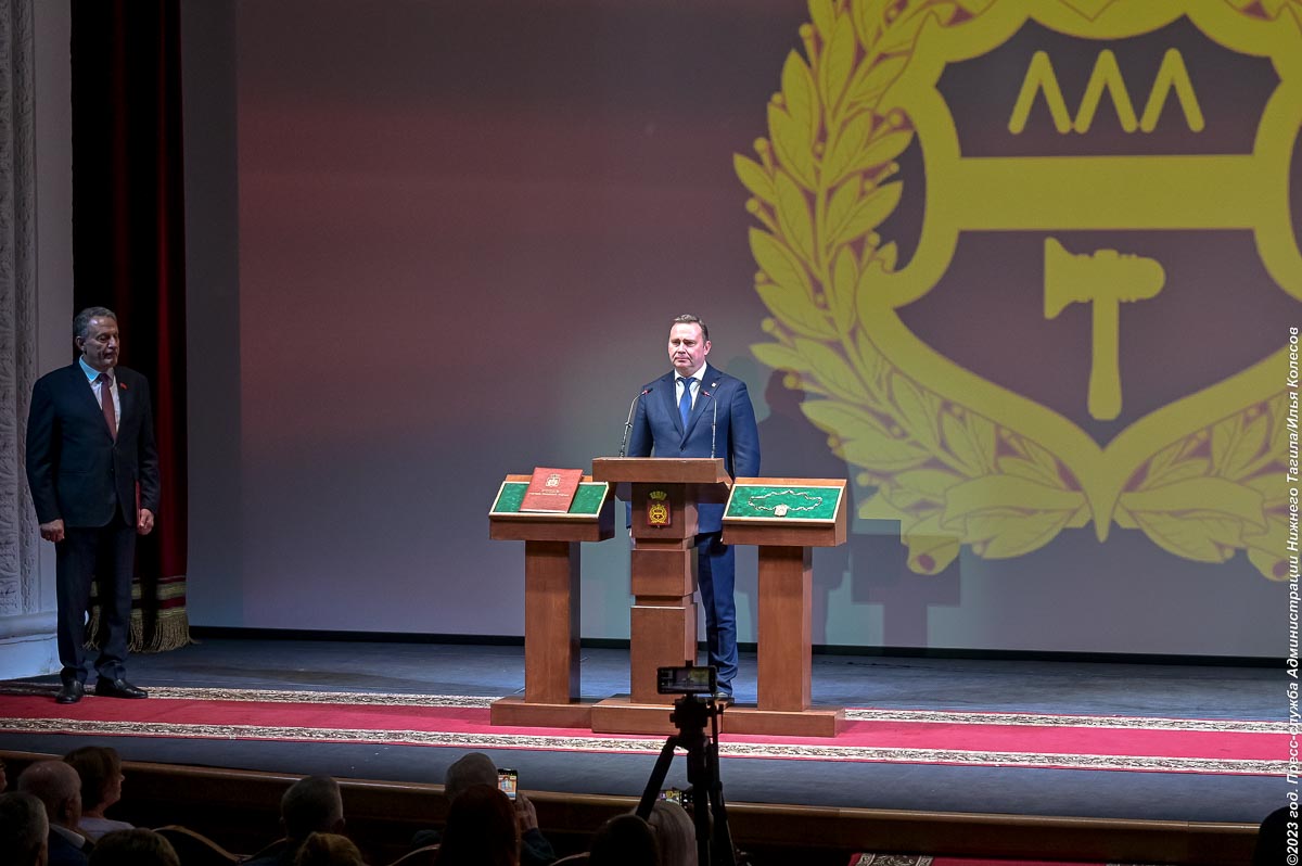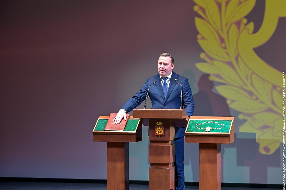 «Я, Пинаев Владислав Юрьевич, вступая в должность главы города Нижний Тагил, торжественно обещаю справедливо и беспристрастно осуществлять предоставленные мне полномочия, честно и добросовестно исполнять свои обязанности, прилагая все свои силы и способности на благо жителей города».