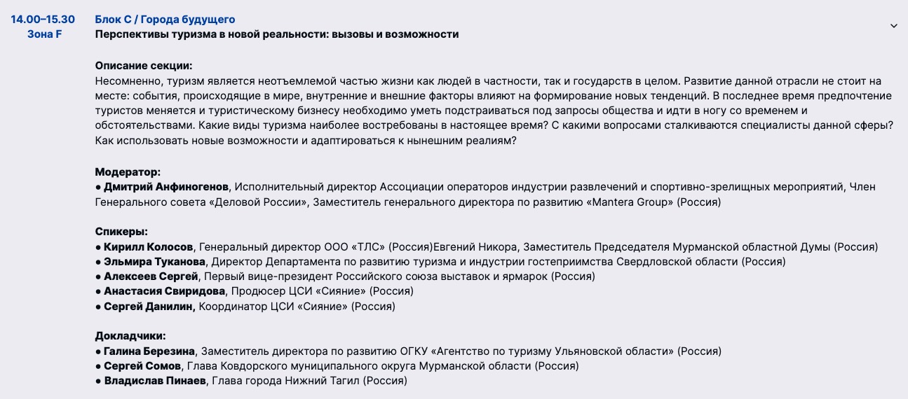 Пинаев представит доклад по теме ревитализации Нижнетагильского завода-музея в блоке «Перспективы туризма в новой реальности: вызовы и возможности». Помимо него, с докладами выступят заместитель директора по развитию ОГКУ «Агентство по туризму Ульяновской области» и глава Ковдорского муниципального округа Мурманской области. Модератором встречи станет исполнительный директор Ассоциации операторов индустрии развлечений и спортивно-зрелищных мероприятий Дмитрий Анфиногенов. В числе спикеров — директор Департамента по развитию туризма и индустрии гостеприимства Свердловской области Эльмира Туканова.