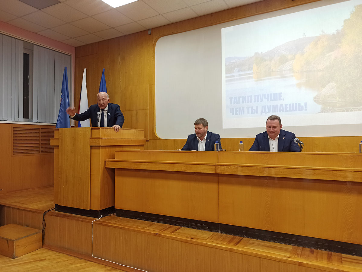 Следом выступил секретарь местного отделения партии Владислав Пинаев, который рассказал о реализованных проектах за 2019-2023 гг. и представил программу развития города на 2024-2028 гг. под девизом: «Тагил лучше, чем ты думаешь».