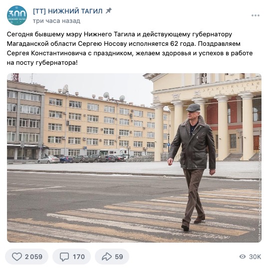 Сегодня, 17 февраля отмечает своё день рождения экс-мэр Нижнего Тагила, а ныне губернатор Магаданской области Сергей Носов. Ему исполнилось 62 года. Бывшего главу города поздравили в самой многочисленной группе Нижнего Тагила во Вконтакте «Типичный Тагильчанин». За три часа соответствующая запись набрала более 2 тыс. «лайков» и около 200 комментариев.